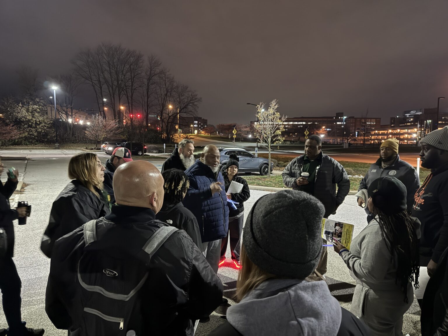 The show of force took place at Akron’s Robert K. Pfaff Transit Center on Thursday before a Metro board meeting there. Nearly three dozen Local 1 Bus Operators, Vehicle Service Workers, and Clerical Workers, along with TWU International staff, handed out hundreds of flyers. Every half hour, dozens of Bus Operators honkedtheir horns as they left the transit center to spread out across the Akron area.